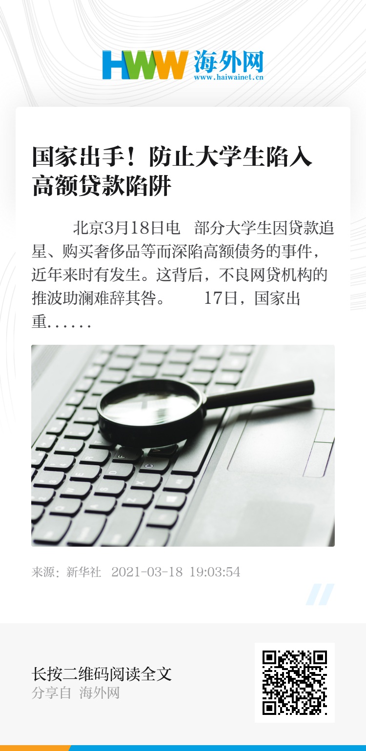 新华社北京3月18日电 部分大学生因贷款追星、购买奢侈品等而深陷高额债务的事件,近年来时有发生。这背后,不良网贷机构的推波助澜难辞其咎。