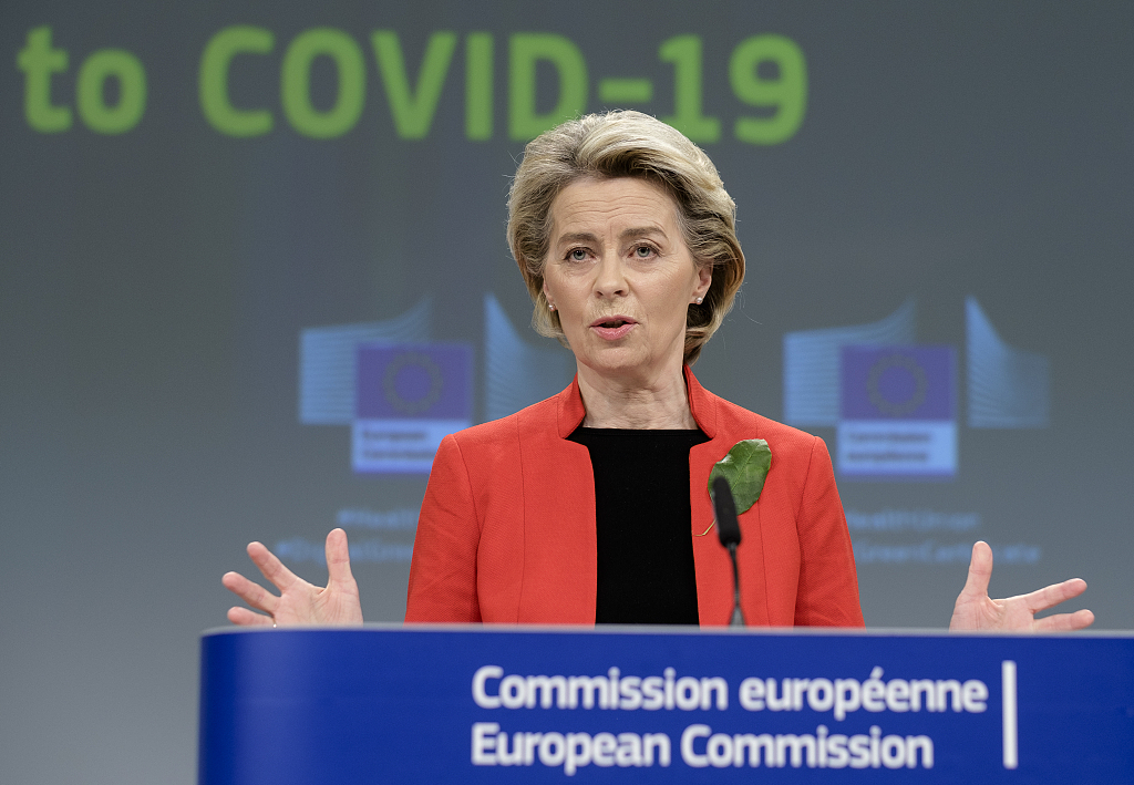 比利时首都布鲁塞尔,欧盟委员会主席乌尔苏拉·冯德莱恩在会议上发表讲话。图片来源:人民视觉