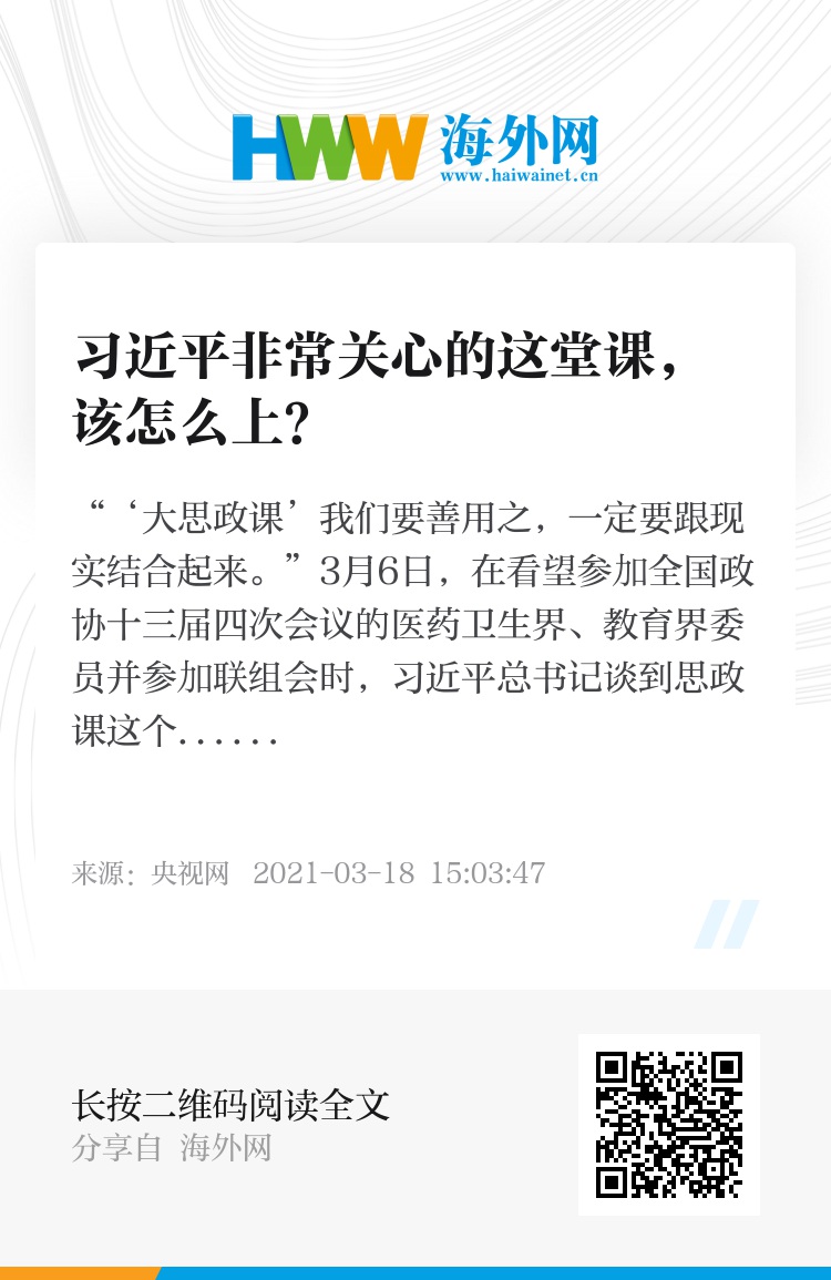 “‘大思政课’我们要善用之,一定要跟现实结合起来。”3月6日,在看望参加全国政协十三届四次会议的医药卫生界、教育界委员并参加联组会时,习近平总书记谈到思政课这个课题,强调不仅应该在课堂上讲,也应该在社会生活中来讲。