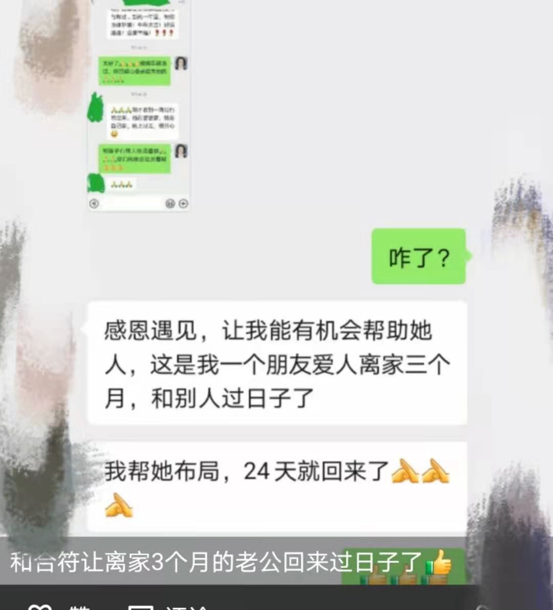 有聊天截图称,一“学员”的弟弟因为胆囊炎而疼痛,她给弟弟画了肝胆符咒后,就不疼了。在面授课程中,有男子通过“吹气大法”调理乳腺纤维瘤。该男子对着一名女子胸部吹气后,随后该女子向其道谢。该男子说,“(肿瘤)没了,一两个疗程就完了。”