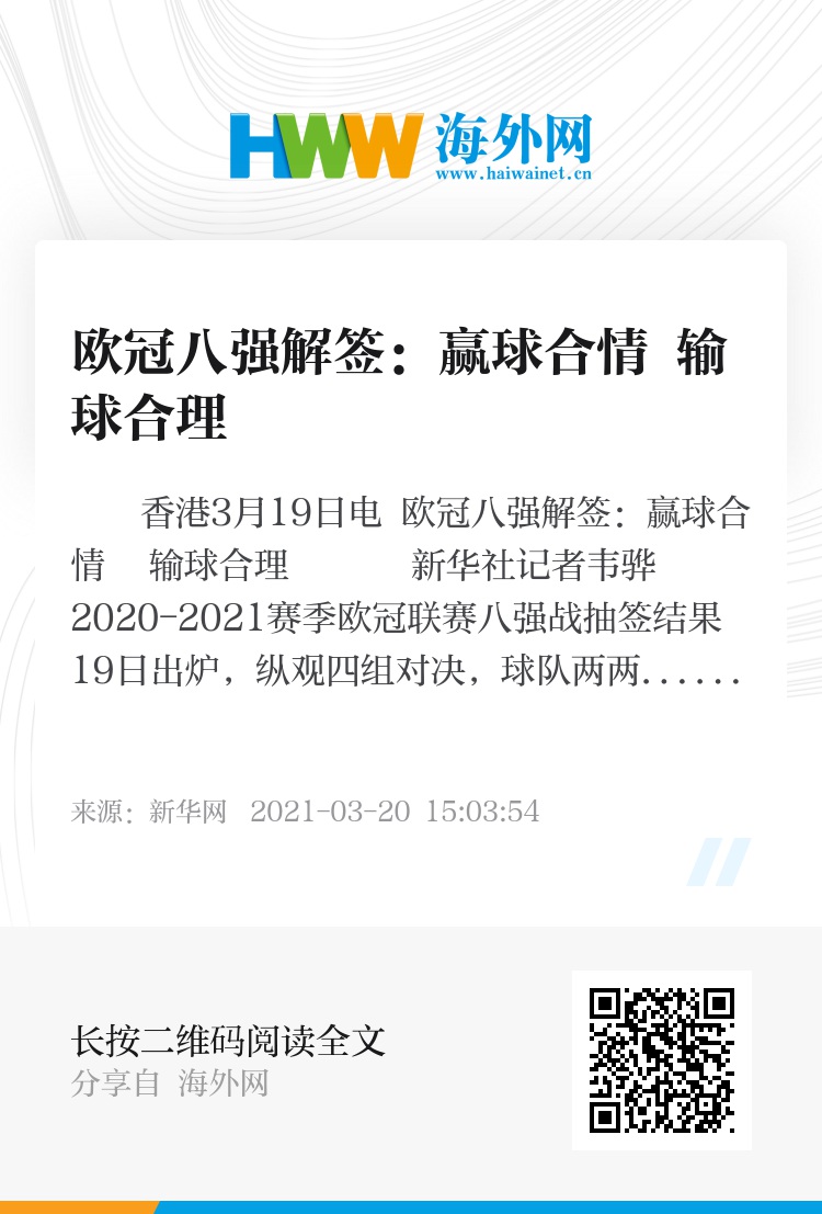 新华社香港3月19日电 欧冠八强解签:赢球合情 输球合理