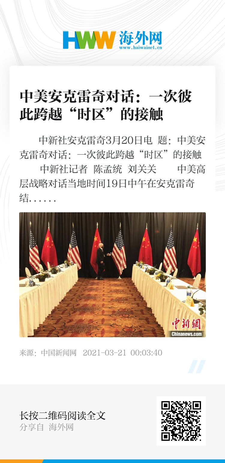 中新社安克雷奇3月20日电 题:中美安克雷奇对话:一次彼此跨越“时区”的接触