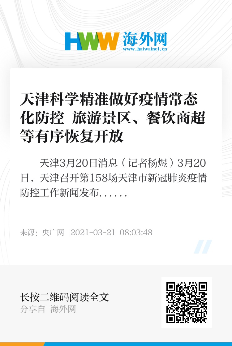 天津将密切关注疫情形势进展,研判评估现行政策有效性及合理性,一旦情况发生变化,随时科学动态调整疫情防控措施。