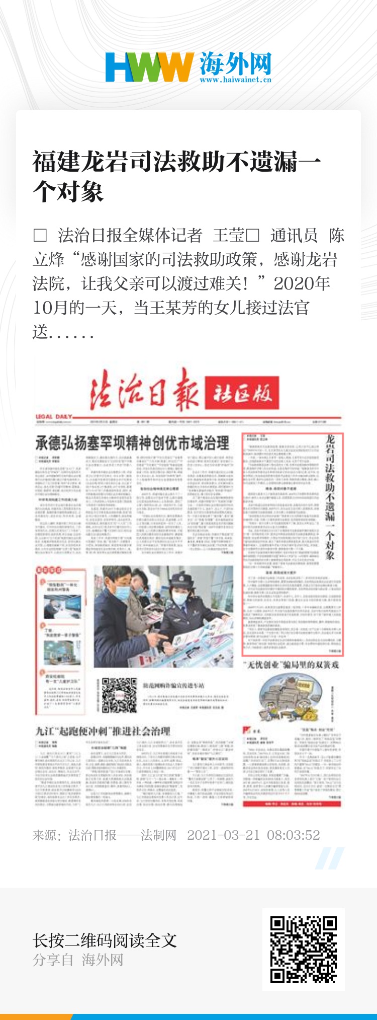 2020年以来,龙岩法院共办理司法救助案件92件,救助142人次。张意文表示,龙岩两级法院将进一步准确把握司法救助法律与政策,找准案件当事人生活困难的着力点和切入点,用好、用足司法救助措施,切实使困难当事人享受到国家福利。