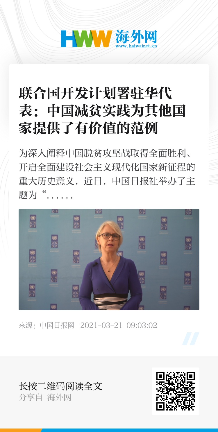 首先,我谨代表联合国开发计划署祝贺中国消除极端贫困。在过去40年里,中国有7.5亿人口成功摆脱了贫困,约占全球脱贫人口数量的四分之三,这是全球减贫事业迈出的重要一步。