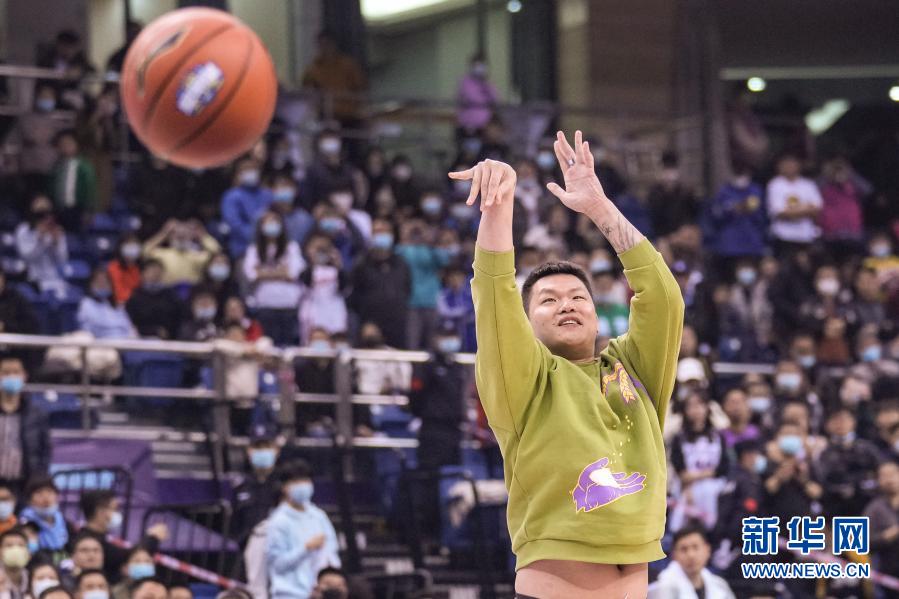 3月20日,广东宏远俱乐部总经理朱芳雨在投篮游戏中。