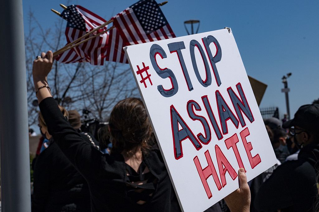 当地时间2021年3月20日,美国亚特兰大,当地爆发主题为“停止仇恨亚裔”(Stop Asian Hate)的游行和集会。图片来源:人民视觉