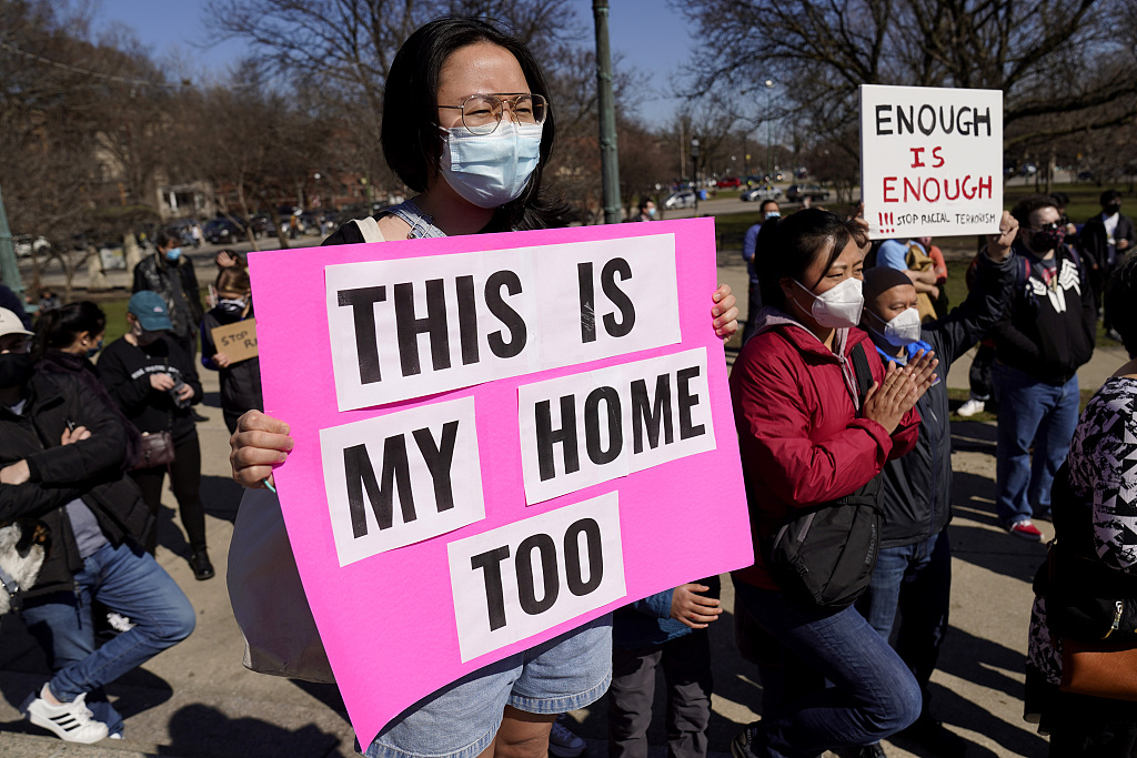 当地时间2021年3月20日,美国芝加哥,当地爆发主题为“停止仇恨亚裔”(Stop Asian Hate)的游行和集会。图片来源:人民视觉