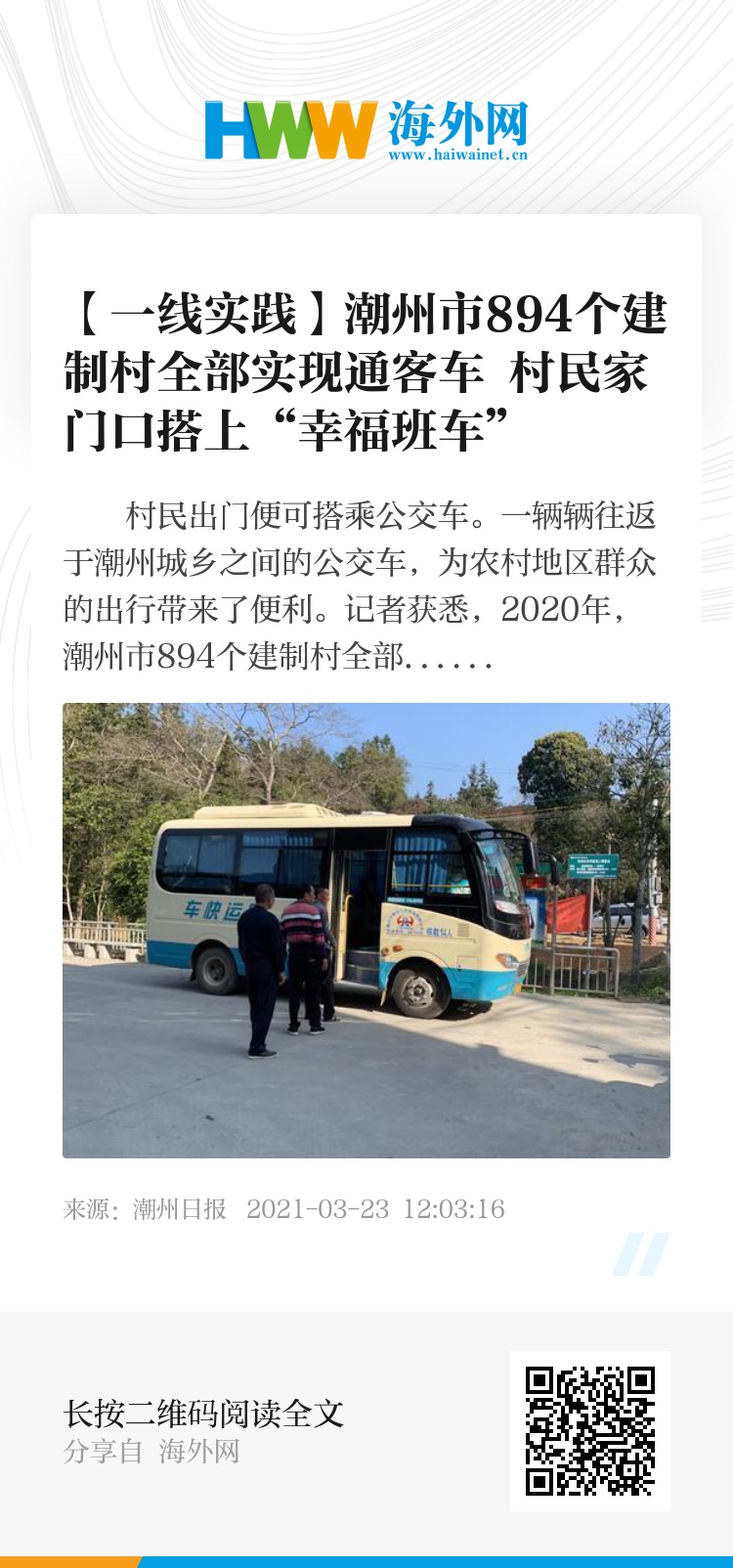 潮州市交通运输局:推进村村通客车 补齐交通短板