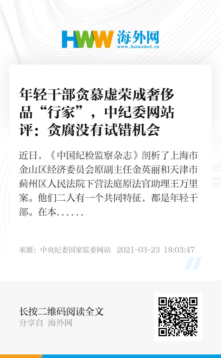 近日,《中国纪检监察杂志》剖析了上海市金山区经济委员会原副主任金英丽和天津市蓟州区人民法院下营法庭原法官助理王万里案。他们二人有一个共同特征,都是年轻干部。在本是振翅欲飞的年纪,却因贪腐早早折了翅膀,令人惋惜也给人警示。