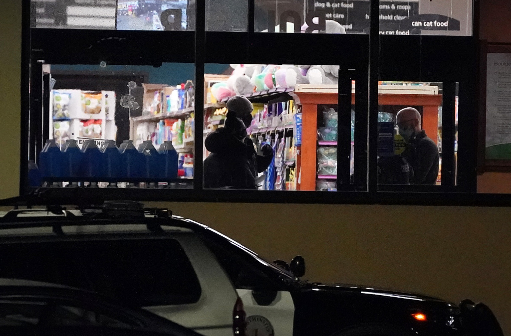 当地时间3月22日,美国科罗拉多州博尔德市一家超市当天下午发生大规模枪击事件,造成包括一名警察在内的10人死亡,一名嫌犯被抓获。图片来源:人民视觉/视觉中国