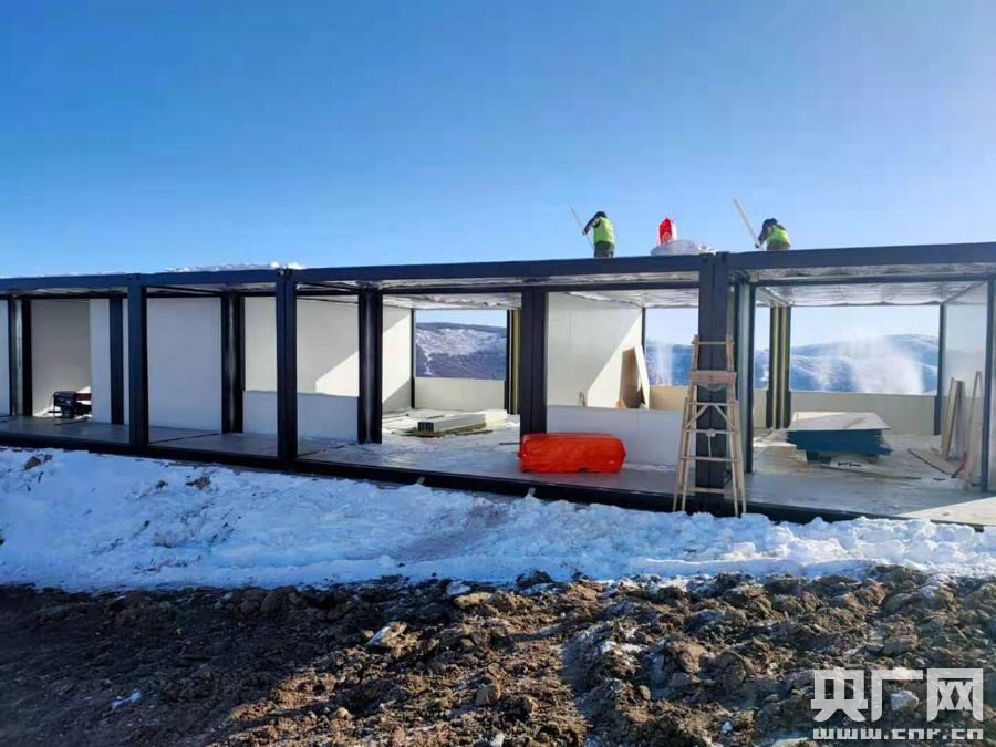 2020年10月,工人正在搭建雪道旁运动员的临时休息间(吴雪松供图)