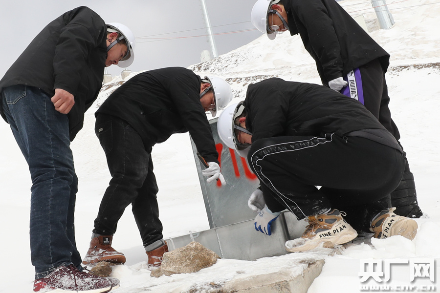 即使是正午,最高温也在零摄氏度以下。海拔1990米的山上,风力一般都是4到5级,凛冽的风夹杂着雪沫吹到脸上割得人脸生疼。但低头看,在太阳的炙烤下,融化的雪逐渐变多,局部地表也在悄悄裸露出来。这时,吴雪松带上他的三个“90后”工友闫轩、邓仲泽、王山铭,又上山巡查了。