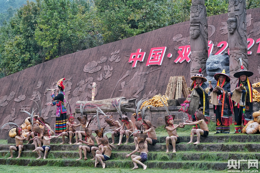 “老虎”刚走,“小豹子”们就安耐不住了。“毕摩”钻木取火寓意古老的彝族文化薪火相传,美好的日子生生不息、红红火火!“小豹子笙”由18名8至15岁的小男孩展演,只见他们忽而欢乐地抢食,忽而拿起棍棒挥舞,上蹿下跳、灵气十足,像极了活脱脱的“小豹子”。据说,完整的小豹子笙一共有72套动作,包括跺脚、飞脚、转脚、甩脚,踏步、颠步,挥棍、翻棍、摇棍等。来自雨龙小学三年级的“小豹子”郭龙顺小朋友说:“家人和老师教导我们要发扬老虎和豹子的精神,勇敢、睿智、百折不挠。在我们家乡,每一个小朋友都希望能参加一次‘小豹子笙’。”