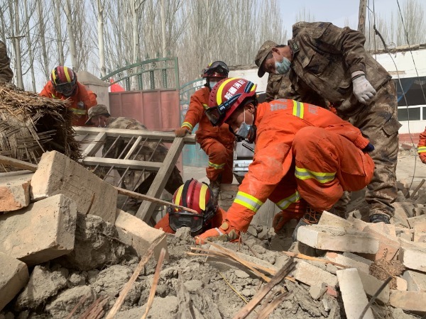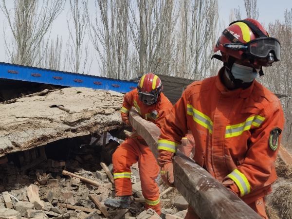 地震发生后,新疆消防救援总队立即启动地震应急救援预案,阿克苏地区消防救援支队先遣队39车130人、1支搜救犬集结出动,拜城县大队第一时间出动3辆消防车12名指战员赶赴震中区域,已深入居民家中、学校、幼儿园进行排查灾情,并对部分老旧房屋可能出现的险情提出了合理加固及安全撤离意见。同时,消防指战员还针对现场部分居民住宅电器线路破损老化等实际情况,提出防火建议12条,现场培训群众300余人。