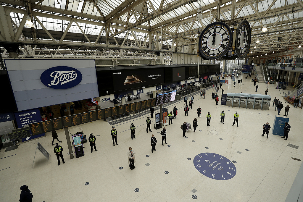 英国首次“封城”一周年之际 伦敦车站工作人员静默一分钟