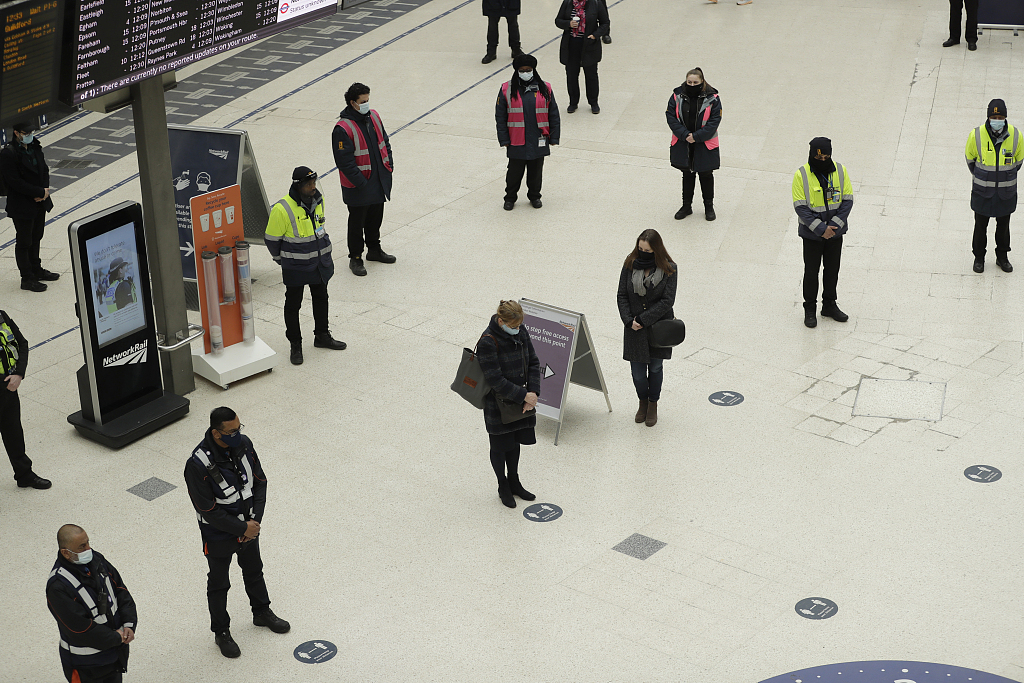 英国首次“封城”一周年之际 伦敦车站工作人员静默一分钟