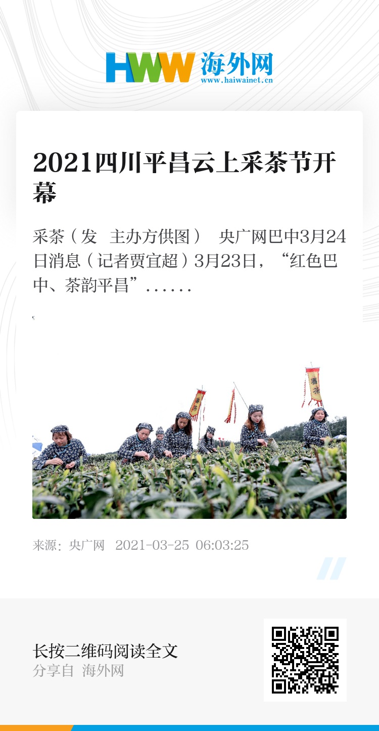 央广网巴中3月24日消息(记者贾宜超)3月23日,“红色巴中、茶韵平昌”2021中国平昌云上采茶节在平昌县开幕。现场,蜀茶集团与平昌县人民政府签订茶旅经营战略合作协议。