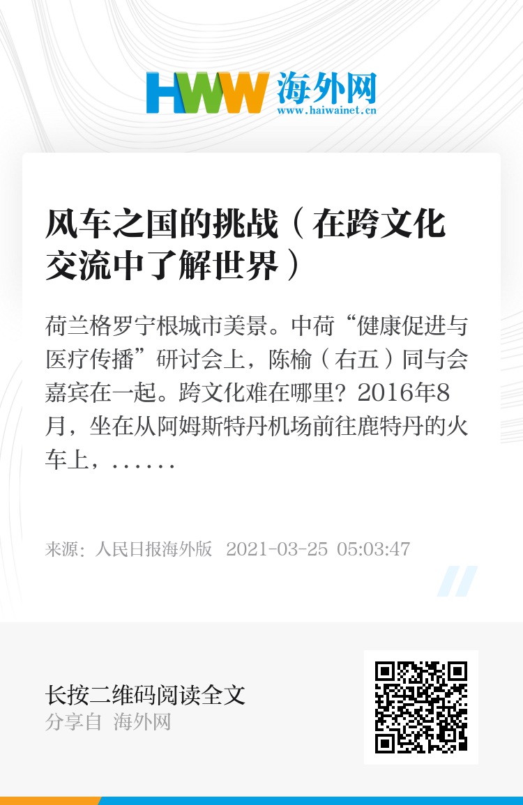 2016年8月,坐在从阿姆斯特丹机场前往鹿特丹的火车上,我正式踏上了留学荷兰之路。火车行进途中,荷兰的风车、草地、奶牛,一波又一波令人心旷神怡的田园风光,让我对这个国家的一切都充满着好奇与兴奋。但那时我未曾想到的是,一场跨文化交流的“磨炼”旅行也正式开始了。