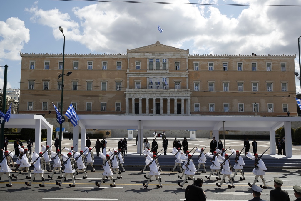 当地时间3月25日,希腊在首都雅典举行盛大的阅兵仪式,庆祝独立战争胜利200周年。图片来源:澎湃影像/IC photo
