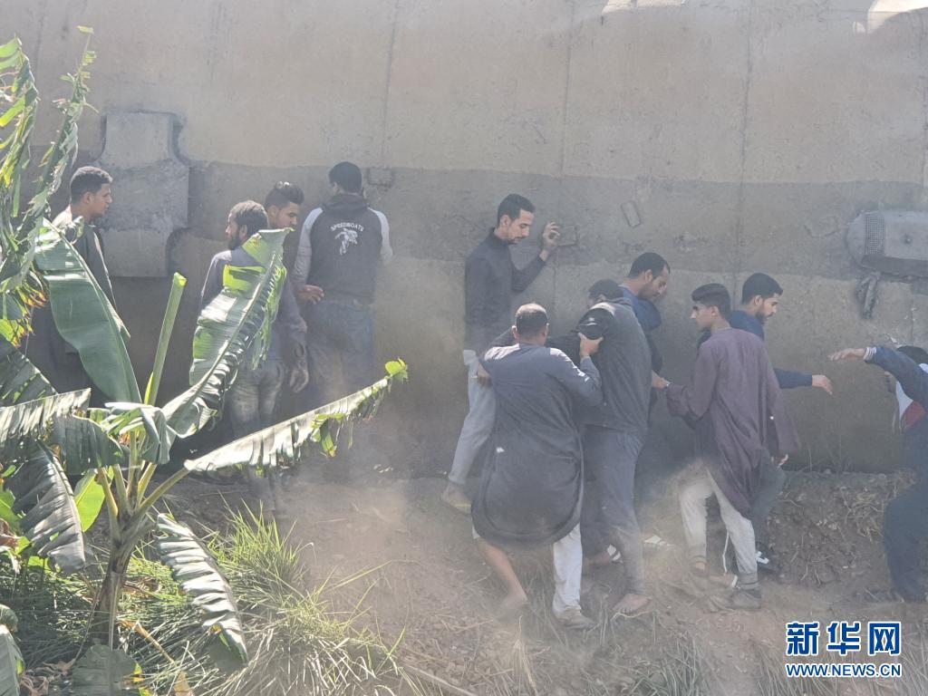 3月26日,人们聚集在埃及索哈杰省火车相撞事故现场(手机照片)。新华社发