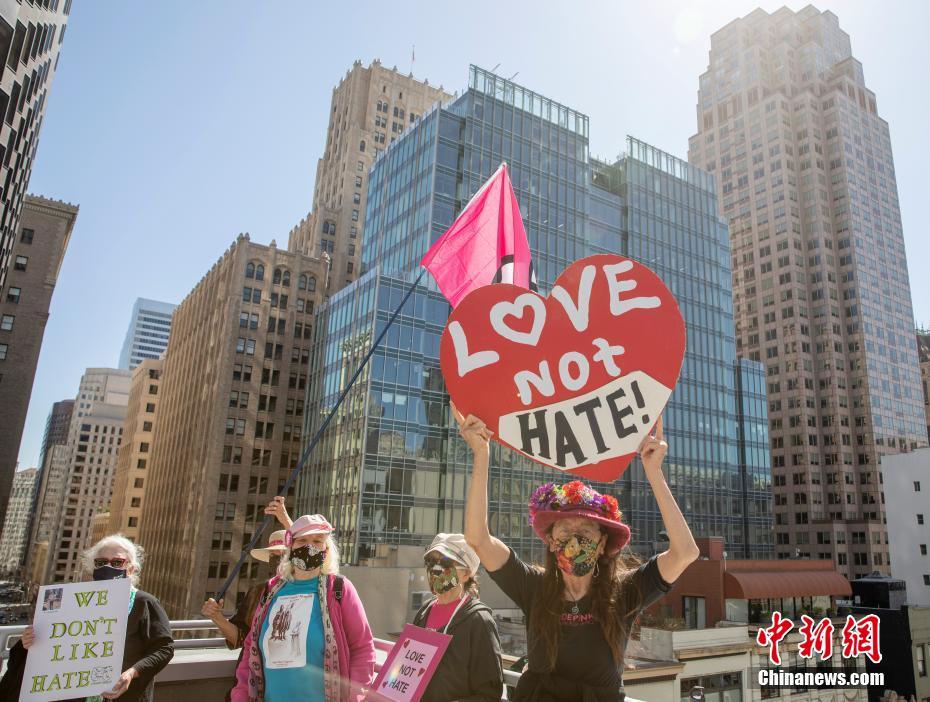 当地时间3月27日,美国加州旧金山大批民众走上街头,抗议针对亚裔的歧视和暴力行为。当日,美国多地爆发反对歧视亚裔的游行和集会。 中新社记者 刘关关 摄