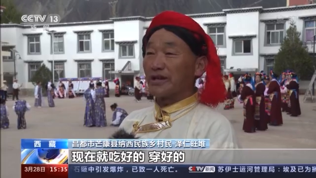 昌都市芒康县纳西民族乡村民 泽仁旺堆:我们家来说也有翻天覆地的变化,现在的话就吃好的、穿好的,每天都是开开心心。在这样的环境下,我们在这里生活,心里感到很高兴,很快乐。