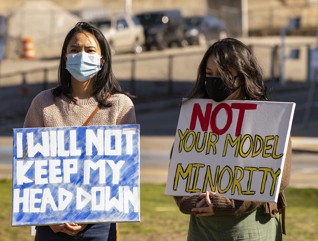 当地时间2021年3月27日,美国波士顿,当地爆发亚裔反歧视大游行。图片来源:人民视觉