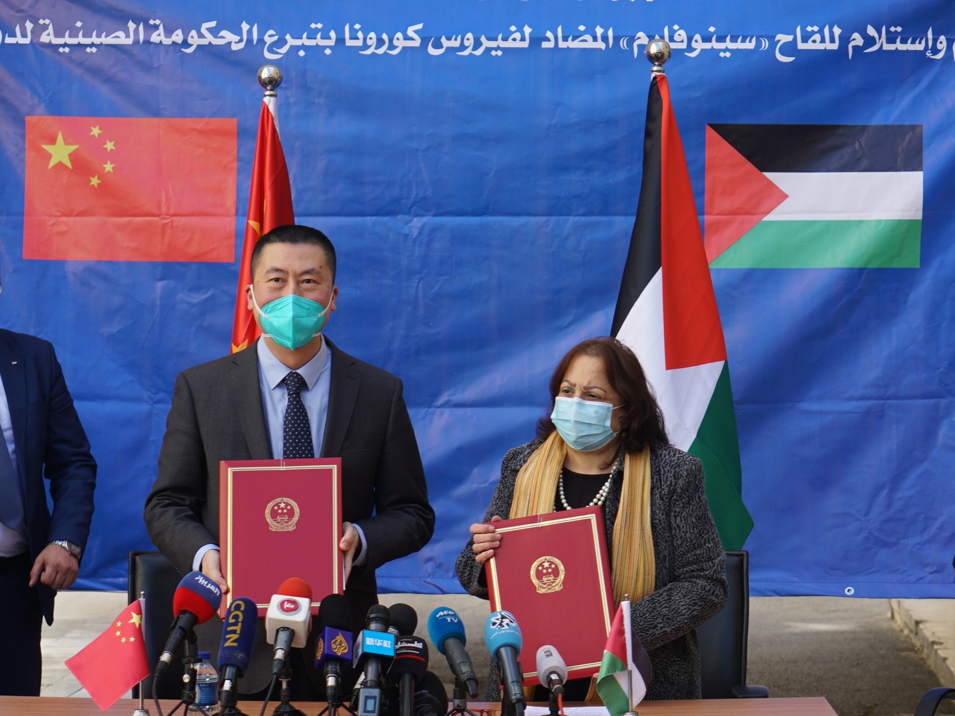 郭伟表示,今天,在两国有关部门密切合作下,中国政府向巴勒斯坦捐赠的10万剂国药集团新冠疫苗顺利运抵。中方向巴援助疫苗,是落实两国元首重要共识的最新举措,也是落实习近平主席将疫苗作为全球公共产品的庄重承诺。中国再次以实际行动支援巴勒斯坦抗疫斗争。