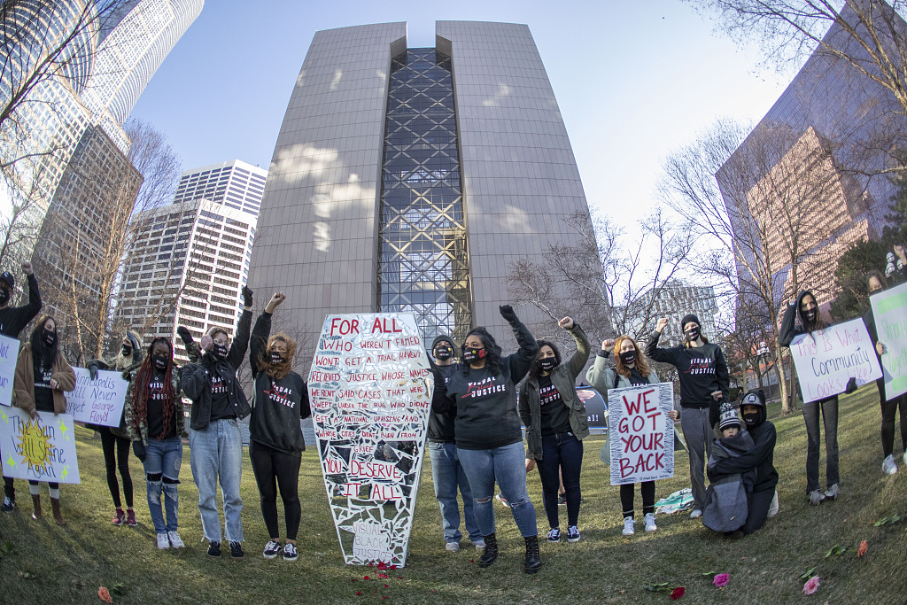 美国“弗洛伊德案”开庭日 死者家属和律师以跪姿致哀