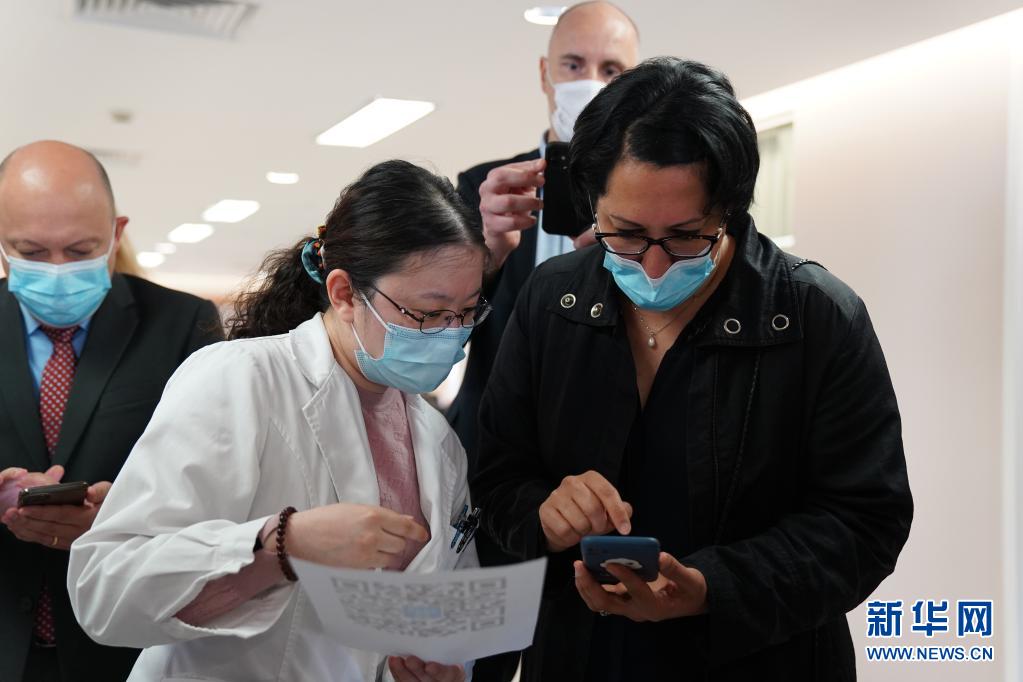 接种点工作人员核对外籍人士的预约信息(3月29日摄)。新华社记者 袁全 摄