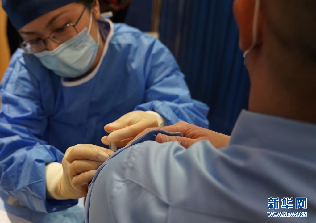 医务人员为一名外籍人士接种疫苗(3月29日摄)。新华社记者 袁全 摄