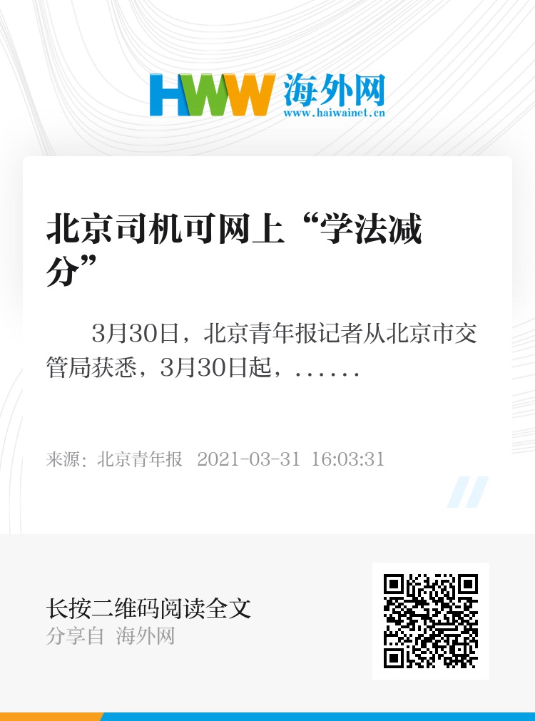 3月30日,北京青年报记者从北京市交管局获悉,3月30日起,北京市将实施接受教育减免交通违法记分改革措施。司机通过“交管12123”APP即可完成网上学习,一次可减免1分,一个记分周期内累计最高减免6分。但累积记分达到12分等7种情形不能申请“学法减分”。