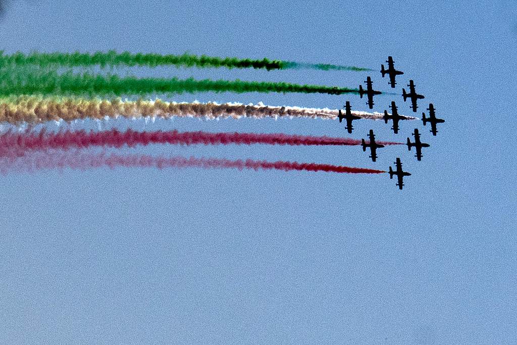 意大利特技飞行队空中表演 纪念意空军成立98周年