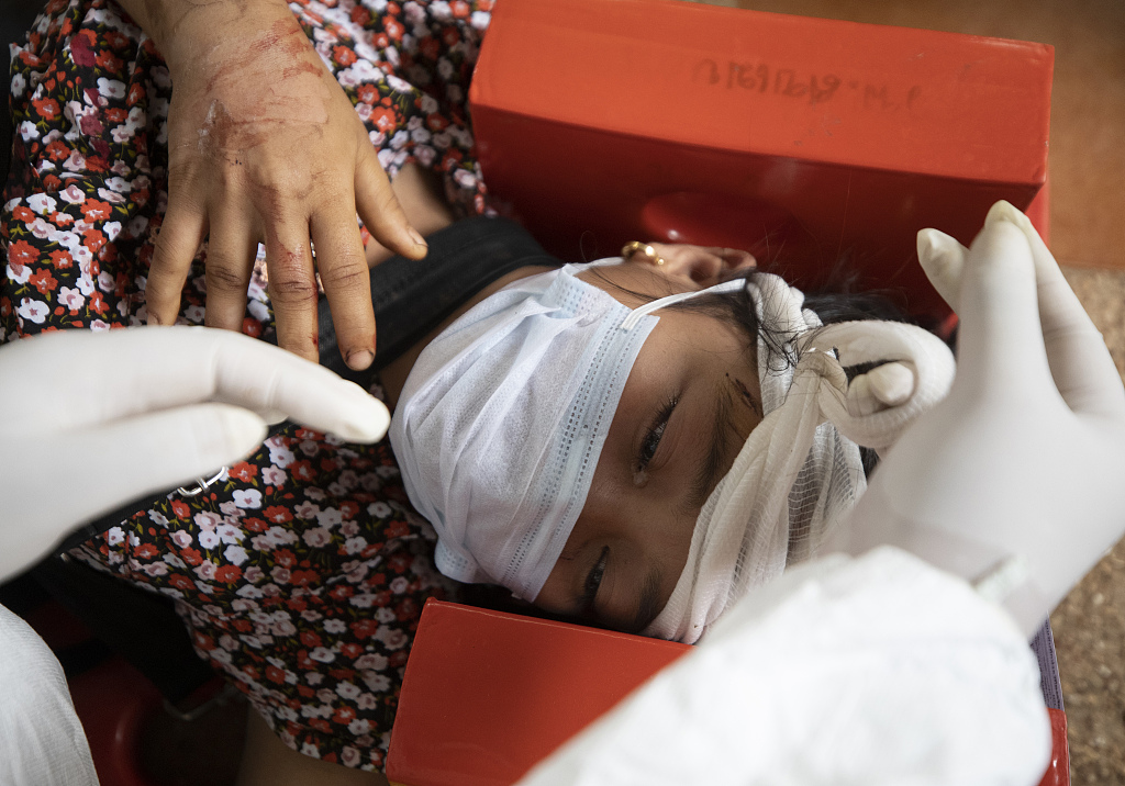 图为当地时间3月30日,受伤的缅甸民众乘船抵达当地医疗中心接受医治。图片来源:人民视觉