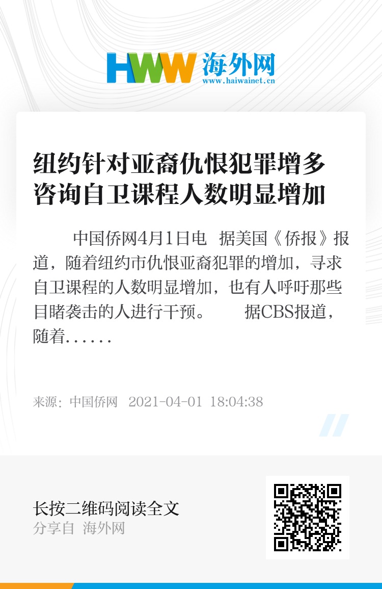 中国侨网4月1日电 据美国《侨报》报道,随着纽约市仇恨亚裔犯罪的增加,寻求自卫课程的人数明显增加,也有人呼吁那些目睹袭击的人进行干预。