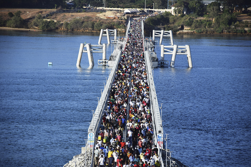 肯尼亚:因新冠疫情水路被封 大量民众通过蒙巴萨人行浮桥