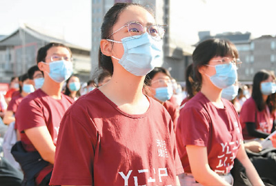 学生参加北京大学2020年开学典礼。新华社记者 任超摄