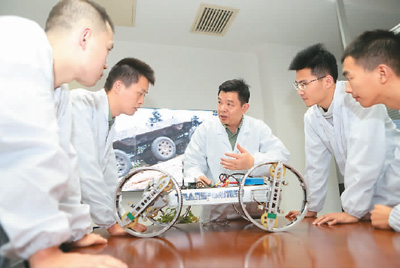国防科技大学科研人员在实验室探讨设计方案。新华社发(何书远摄)