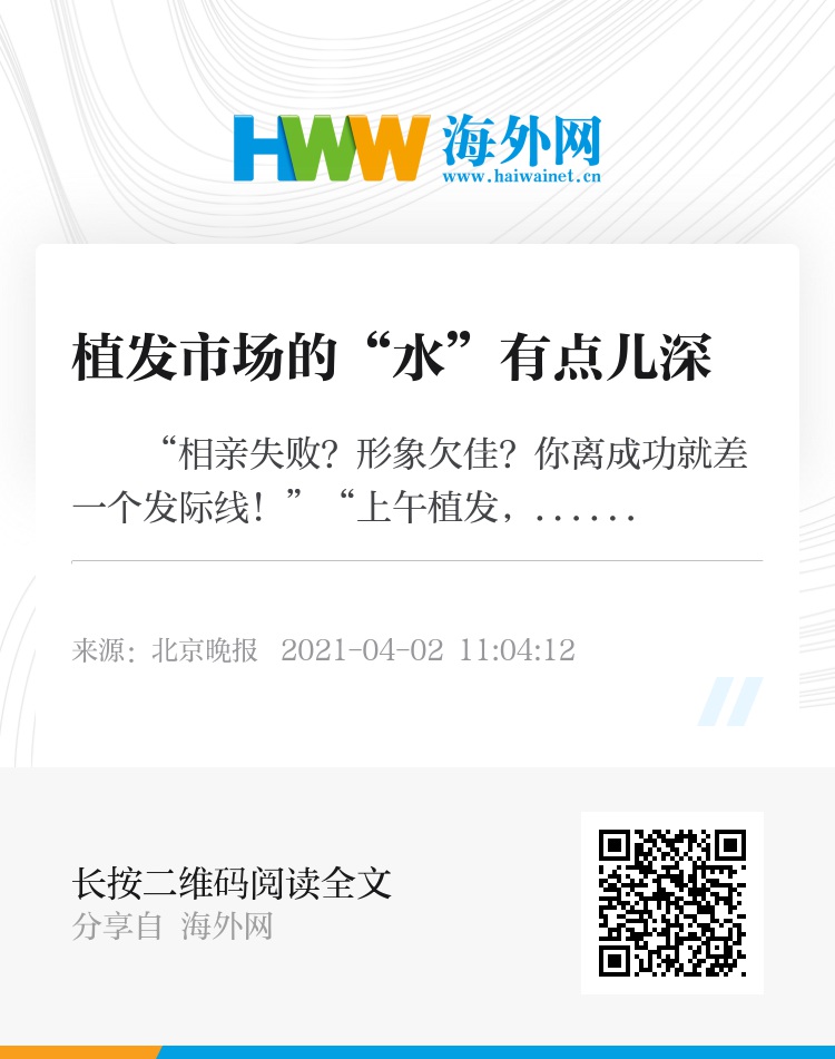“相亲失败?形象欠佳?你离成功就差一个发际线!”“上午植发,下午上班”“一次植发,终身受益”……地铁、公交、电梯里,大幅抢眼的植发广告不断占领公共空间。夸张的广告语吸引了不少为容貌焦虑、试图拯救发际线的年轻人。研究机构的数据显示,从2016年到2020年,我国植发行业的市场规模从57亿元跃升至192.2亿元。