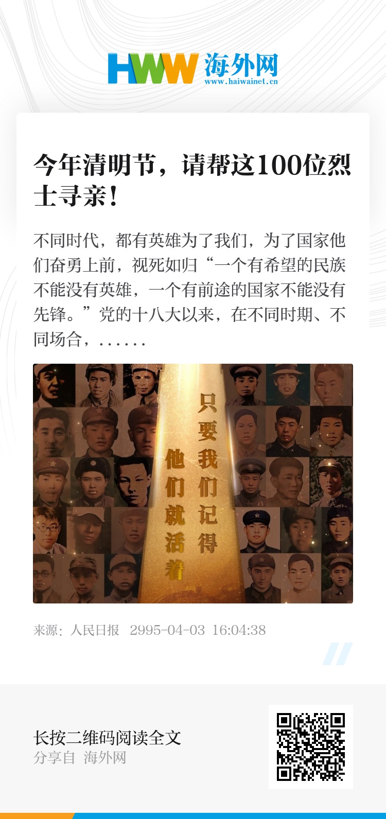 今年清明节,请帮这100位烈士寻亲!