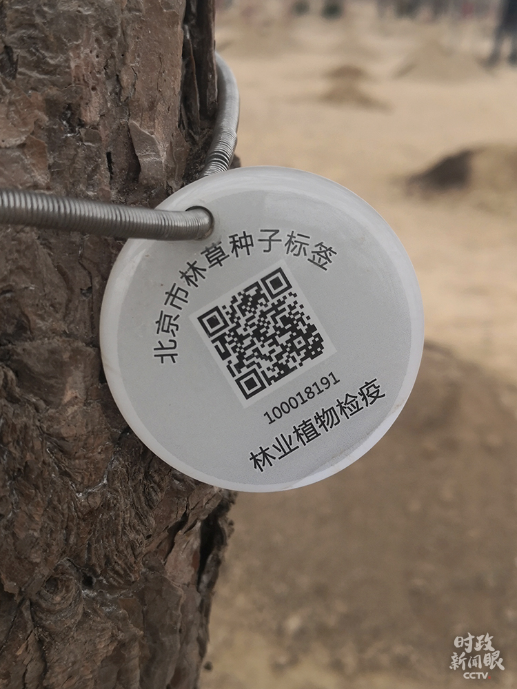 △现场的树木都配有一个二维码标签,识别后可看到详细信息。(总台央视记者钟锋拍摄)