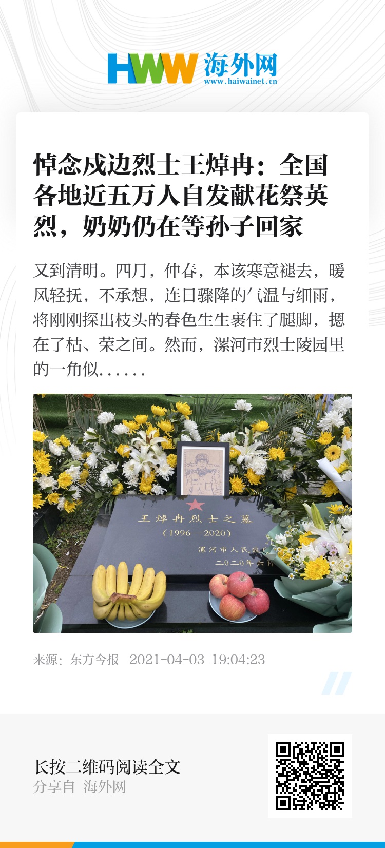 如果英雄地下有知,王焯冉在这个春天,在魂归故里的第一个清明节一定很欣慰:因为,这才是他和战友用生命守护国家的真正意义所在。
