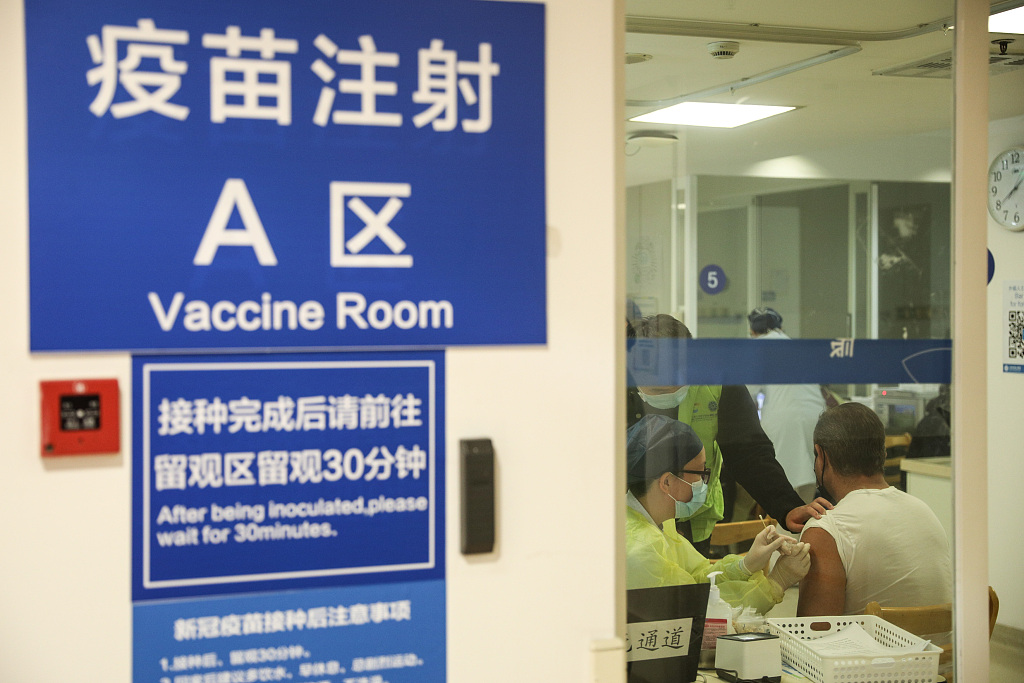 2021年4月3日下午,上海市同仁医院接种点开设在沪外籍人士新冠疫苗接种专场,来自美国、韩国、日本、马来西亚等国的720位外籍人士,通过“健康云”应用程序完成预约接种。上海市根据“知情、自愿、自费、风险自担”原则,已全面启动在沪外籍人士新冠疫苗预约接种。 图片来源:张亨伟/中新社