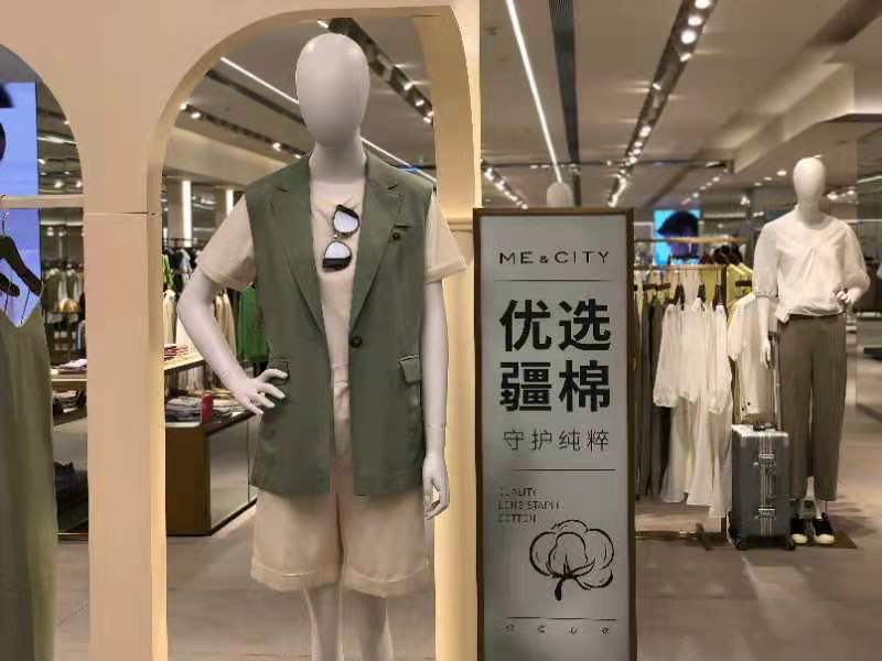 上海环球港某服装门店,店内打出新疆棉相关产品的广告 。 记者有之炘 摄
