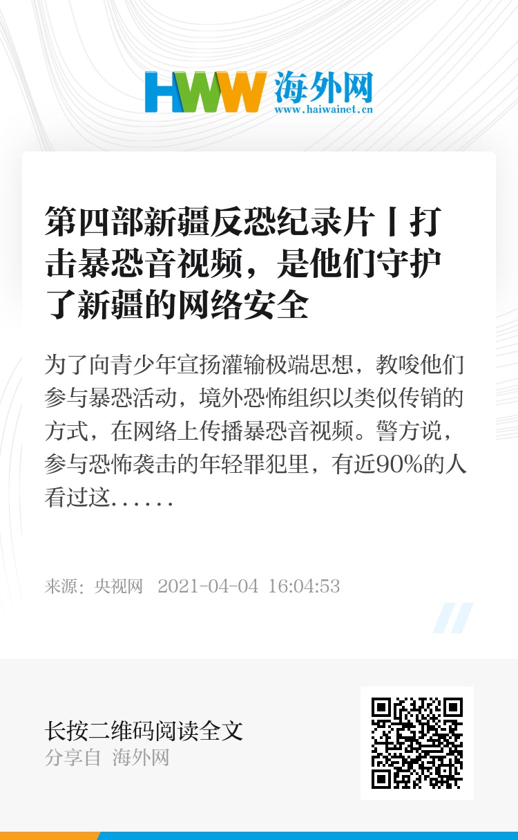 为了向青少年宣扬灌输极端思想,教唆他们参与暴恐活动,境外恐怖组织以类似传销的方式,在网络上传播暴恐音视频。警方说,参与恐怖袭击的年轻罪犯里,有近90%的人看过这些暴力恐怖音像制品。新疆成立了网络安全部门,专门对付这些互联网中的威胁,而这场斗争,已经持续了二十余年。