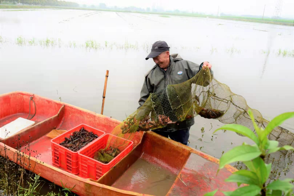 随后,采访团一行来到潜江市熊口镇赵脑村,于万亩虾稻共作基地中探究“网红”美食小龙虾从入侵生物到“致富法宝”的蜕变之路。“‘虾稻共作’模式下每年可以收一季水稻,两季龙虾,极大提高了耕地利用率与农民收益,随着近年来小龙虾产品越来越受欢迎,小龙虾从人见人厌的庄稼害虫变为了村民致富的‘掌中宝’,目前赵脑村靠养殖小龙虾已实现了村民整体脱贫致富”,赵脑村村支书、“绿途虾稻共作”合作社理事长赵常洪说。他表示,虽然2020年新冠疫情对小龙虾产业有一定的影响,但虾农们通过提前育苗、虾苗分养等方式逐步实现了从“大养虾”到“养大虾”模式的转变。通过养殖高规格、优品质的“大虾”,不仅有效规避了由于疫情原因导致的小龙虾滞销,更提高了单亩龙虾养殖的产值。