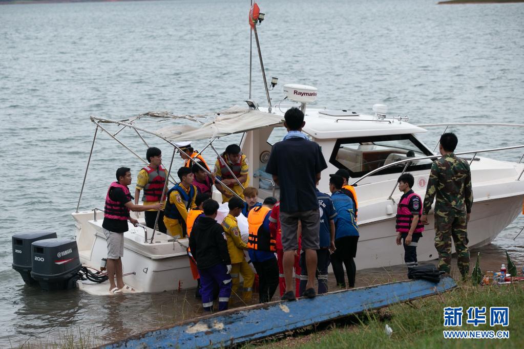 4月4日,在老挝首都万象附近的南俄湖旅游区,搜救人员运送一具遇难者遗体。当日,南俄湖旅游区发生游艇倾覆事故,造成8人死亡。新华社发(凯乔摄)