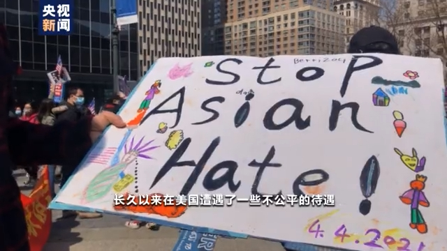 抗议者:这个是我女儿画的,她哭了,她哭了是因为亚洲人,长久以来在美国遭遇了一些不公平的待遇。