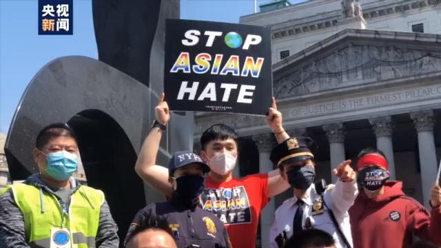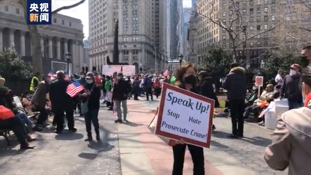 央视记者 徐德智:纽约在过去一段时间每个周末都有这样的抗议示威活动,今天这一场看起来规模是最大的一场。之前就有预告说,今天大约有200个团体会参与到这一次的反歧视亚裔的活动当中来,但实际上根据我们刚才跟现场组织者的沟通,他们表示今天最多可能会有500个团体加入到游行示威。那么除了我身后的广场站满了人之外,实际上在广场街道的另外一边,人们其实也在前面站满了整个街道。